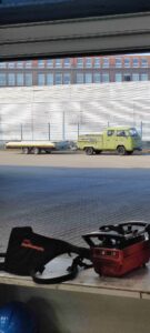 Heute musste die VW Doka mal zeigen, was sie kann. Materialtransport mit historischen Mitteln 🙂 !