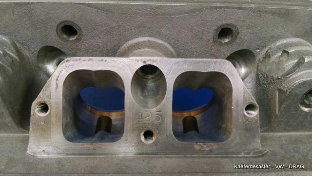 einblick durch die 57mm Einlaßventiele und raus gehts mit 43mm
