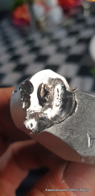 wir werden auch den Durchmesser vergrößern … von M8 auf M10 das sollte reichen … auch Elbe Gelenkwellen gibt uns auf diese Verbindung 2500NM … also ausreichende. Der Start aber war dann auch mal was neues für mich …. denn wenn du nur mit einer Antriebsseite fährst, ist die Wirkung einfach unbeherrschbar !!!!!! so einen Schaden bei mehr als 100 oder gar 200 km/h endet übel !!!! ich konnte den Wagen gerade noch so nach dem Start abfangen …… und bin dabei schon fast in die Mauer gefahren ( nicht das ich diese Art der abknickenden Wegfahrensweise schon kannte) …aber es war unlustig ! nun gut alles ganz gelassen … bis auf 6 Schrauben …. das kann sich sehen lassen ….. die 8 ist gefallen, das Fahrwerk fährt gerade aus und alle sind glücklich ……
