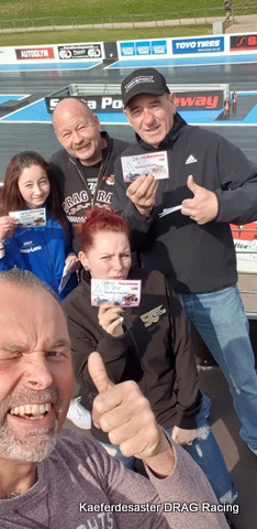 es war die Lichtmaschine und ihr wunderbarer Keilrippenriemen …. das Traumpaar hat wohl so viele Störungen produziert, dass die Zündung dann ab und an einfach aus gegangen ist ….danach lief alles wieder wie gewohnt ….. nur die Launch lief nicht …. egal das geht auch so…. kennen wir ja schon …. aber es stellte sich schnell heraus, dass eben das vernünftige Losfahren !!! doch verdammt wichtig ist ….. wir konnten aber den Fehler am Wochenende nicht beheben ….. und haben jetzt noch 4 Tage zum Testen vor Ort ! …. hier in Santa Pod können wir nun schön stundenlang alles in Grund und Boden ballern was nicht niet- und nagelfest ist…hihihihi…..