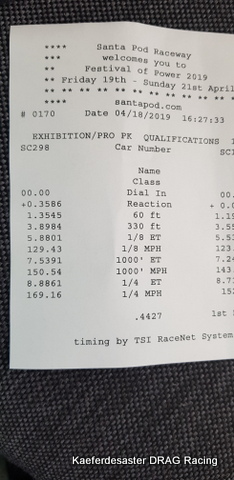 wir haben es getan ….. wir waren so unverschämt und haben für das Kaeferdesaster Team einen Meilenstein überwunden ! die 8 Sekunden sind auf dem Timeslip auf UNSERER Seite zu lesen …… hi hi hi hi .. sonst konnte ich sie immer nur auf der anderen Seite lesen… nun ist sie rüber gehüpft und hat ihren Platz beim der SC 298 gefunden 😉 ….. das Leben ist doch sooooooo schöööönnnnn ….. dabei sah es am Anfang gar nicht so gut aus ….. die Zeiten beim GTI Spring waren alles andere als vielversprechende ….11er Zeiten und das auch nur mit Flammen und feinsten Zündaussetzern ….. aber dann konnten wir am Donnerstag doch endlich auf die Strecke …. der erste Lauf war dann auch direkt eine 9,8…. dann eine 9,7…… und dann BÄM eine 8,8 mit einem echt bescheidenen START unsere 60iger Zeit war nur eine 1,35 ….. aber egal es ist dann immer hin noch eine 8,88 mit 272 km/h