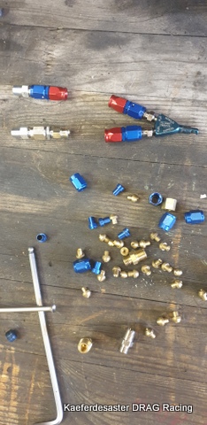 aber es war nicht das einzige Manko welches uns beschäftigt hatte ….. die Ansaugtemperaturen waren EINDEUTIG zu hoch !!!! auf dem Leistungsprüfstand hatten wir immer entspannte 20-30 Grad ….. in Santa Pod aber musste der Motor schon ab dem 2 Gang über 80 Grad heiße Luft ansaugen ….. um dann im 3 und 4 Gang über den Messbereich des Fühlers heraus heiß zu werden …also weit weit über 120 Grad !!!!! und das ist…..so denke ich …… nicht ganz soooo optimal ….bedeutet aber auch, das die Methanolzerstäubung auf der Strecke , so wie sie verbaut ist nicht geht !?!?! Aber was wäre ich denn ohne Ideen …. mein altes Lachgas Sortiment liefert mir einen super Fundus