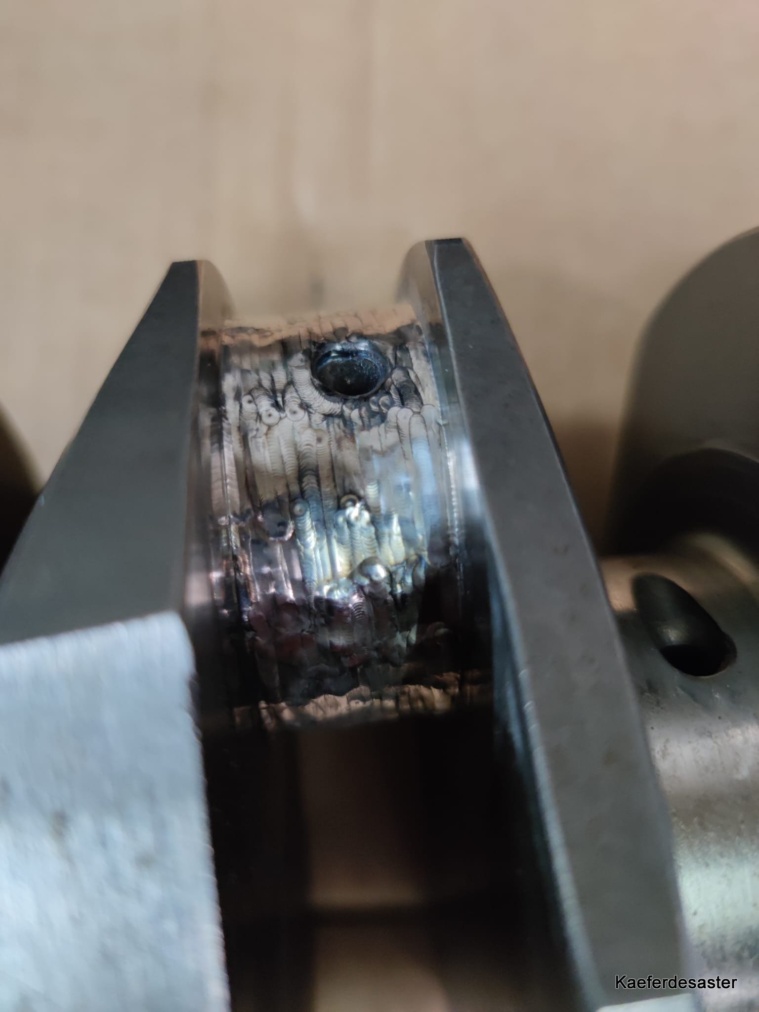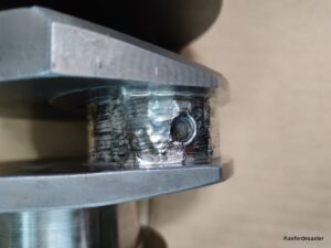 Der Arme hat wieder mal alles gegeben. Da das Schweißgut eine sehr gute Härte aufweist, fällt nach dem Schleifen das Harten weg. So bei uns …. sicherlich kann man dann noch polieren und und und … aber zum Testen ob das nun mit dem Lagerspiel hinhaut reicht das erst einmal.
