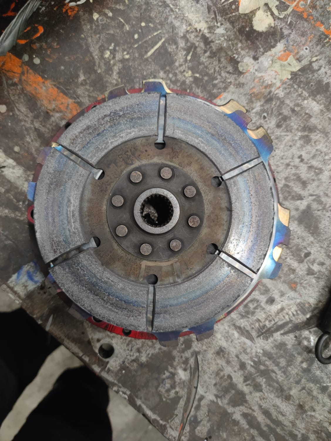 selbst die Kupplungsscheiben sind blau angelaufen