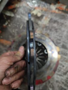 So da draußen, Kommando zurück !!!! Es bleibt bei einer 2 Scheiben Kupplung. WARUM, weil ich nicht richtig gelesen hatte….. 900 Ft Tq sind nicht gleich 900 Nm, sondern 1220 Nm. Also alles auf Anfang. Die Druckplatte wird nun erneuert, danke an McLeod !!!! so wie die Floater und Ringscheiben wieder plan gedreht. 🙂 Die Reibscheiben werden wieder aufgearbeitet, so dass wir am Ende eine neue Kupplung haben die „so McLeod“ locker 1200 Nm packt 🙂