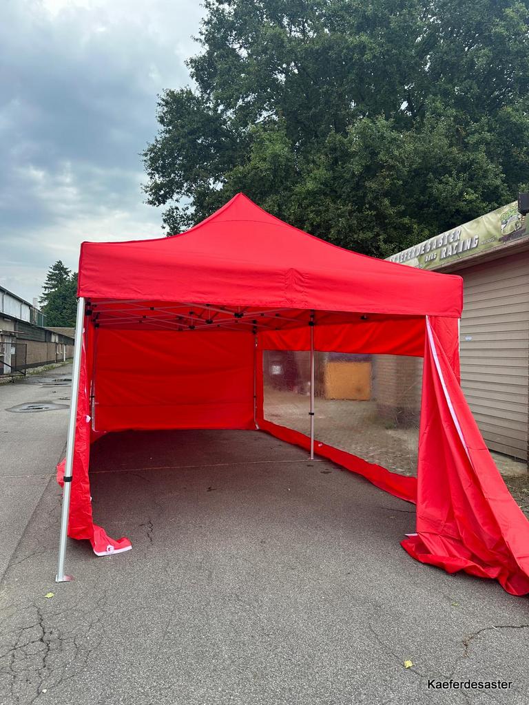 DA ist er …… unser ERSTER Pavillon!! Und in welcher Farbe…… nä…nicht grün….. nicht schwarz…. und auch nicht blau oder weiß….. neeeeee…. ROT ist er 🙂